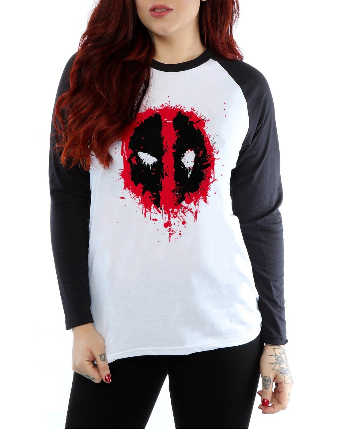 Marvel Damen Deadpool Splat Face Langärmlig Baseball-Hemd
