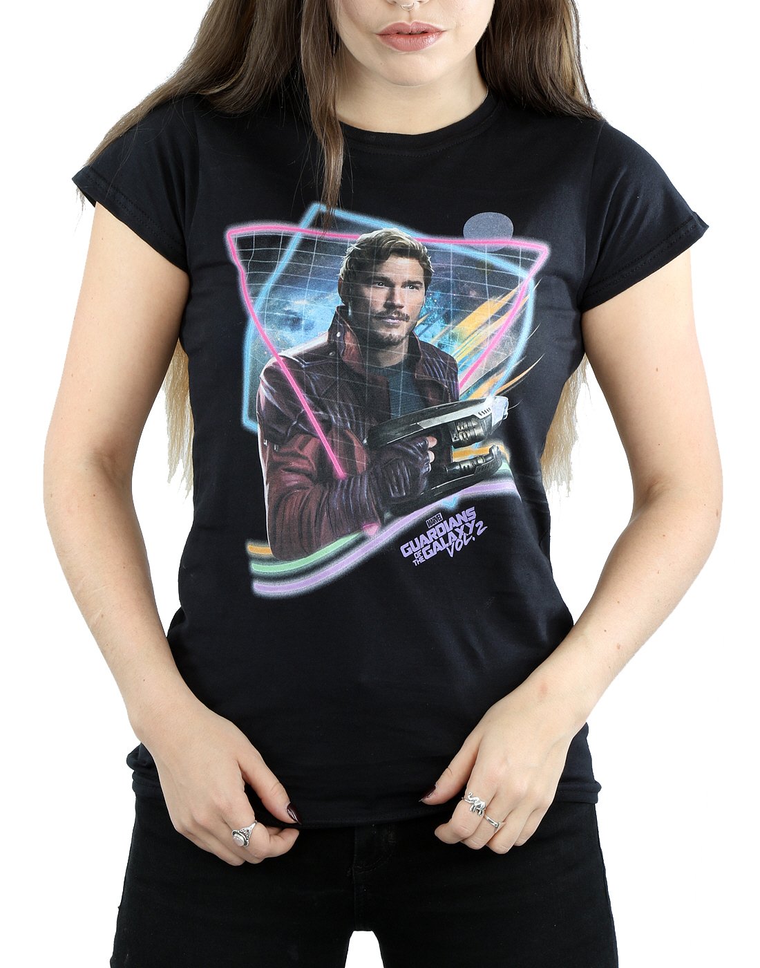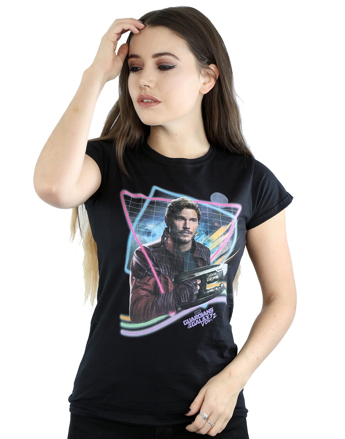 Marvel Damen Guardians of The Galaxy Neon Star Lord T-Shirt