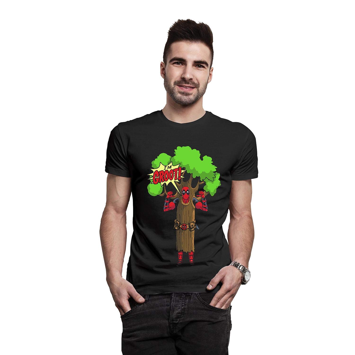 Marvel T-Shirt Deadpool I am Groot schwarz, bedruckt, 100 % Baumwolle, in Polybeutel.