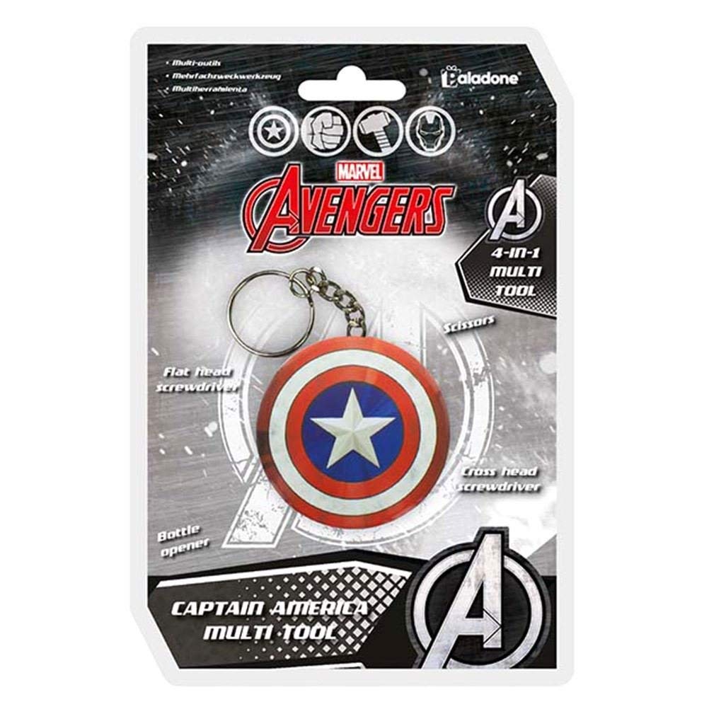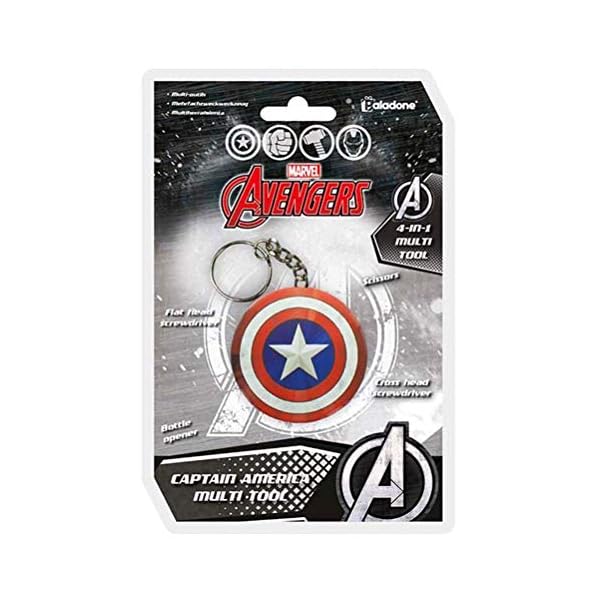 Das ultimative Multi-Tool aus dem ultimativen Avenger. Das Captain America Multi-Tool hat alles, was Sie brauchen, um aus einer klebrigen Situation herauszukommen, darunter einen Flaschenöffner, eine Minerschere, einen Kreuzschlitzschraubendreher und einen flachen Kopfschraubendreher, die alle ordentlich in dem ikonischen Kapitän Amerika rotes weißes und blaues Schild mit einem enthalten sind Schlüsselring Befestigung. Captain America, mit seiner ausführlichen hinteren Geschichte und ikonischen roten weißen und blauen Aussehen, ist ein Liebling für Comic-Helden-Fans jung und alt gleichermaßen, und das Captain America Multi-Tool ist ein offiziell lizenziertes Marvel Avengers Produkt, so dass es ein tolles Retro-Stil Geschenk , Sowie ein perfektes Stück Fan Erinnerungsstücke.